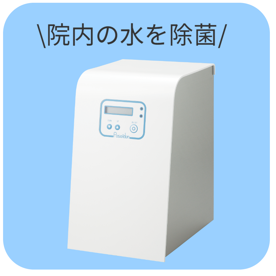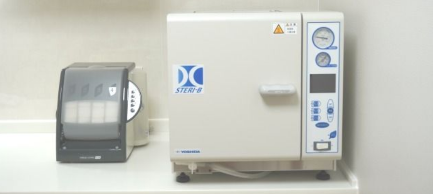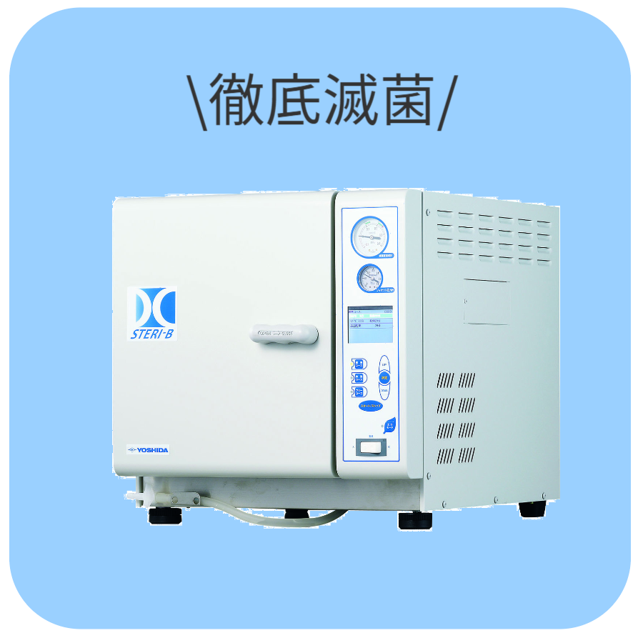 当院では徹底した感染防止対策をとっております。最新の滅菌器や浄水器、飛沫感染を防ぐ粉塵吸引器、また最新の空気清浄機により院内の空気は常に清潔です。